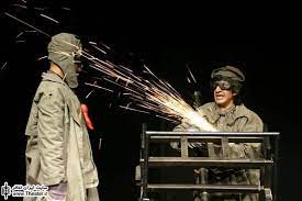 نوآوری در ایده و اجرا: نقطه قوت اصلی نمایش، تلفیق بینظیر اسطوره باستان (ددالوس و ایکاروس) با فضای مدرن و صنعتی است. به جای دکورهای مرسوم، تماشاگران شاهد صحنهای هستند که به یک کارگاه واقعی شباهت دارد. استفاده از ابزارهای صنعتی مانند سنگفرز و دریل، نه تنها یک عنصر بصری است، بلکه بخشی حیاتی از روایت داستان و فرآیند ساخت دستگاه پرواز محسوب میشود. این رویکرد، تماشاگر را به شکلی فعال درگیر داستان میکند و تجربهای زنده و پر انرژی میآفریند.